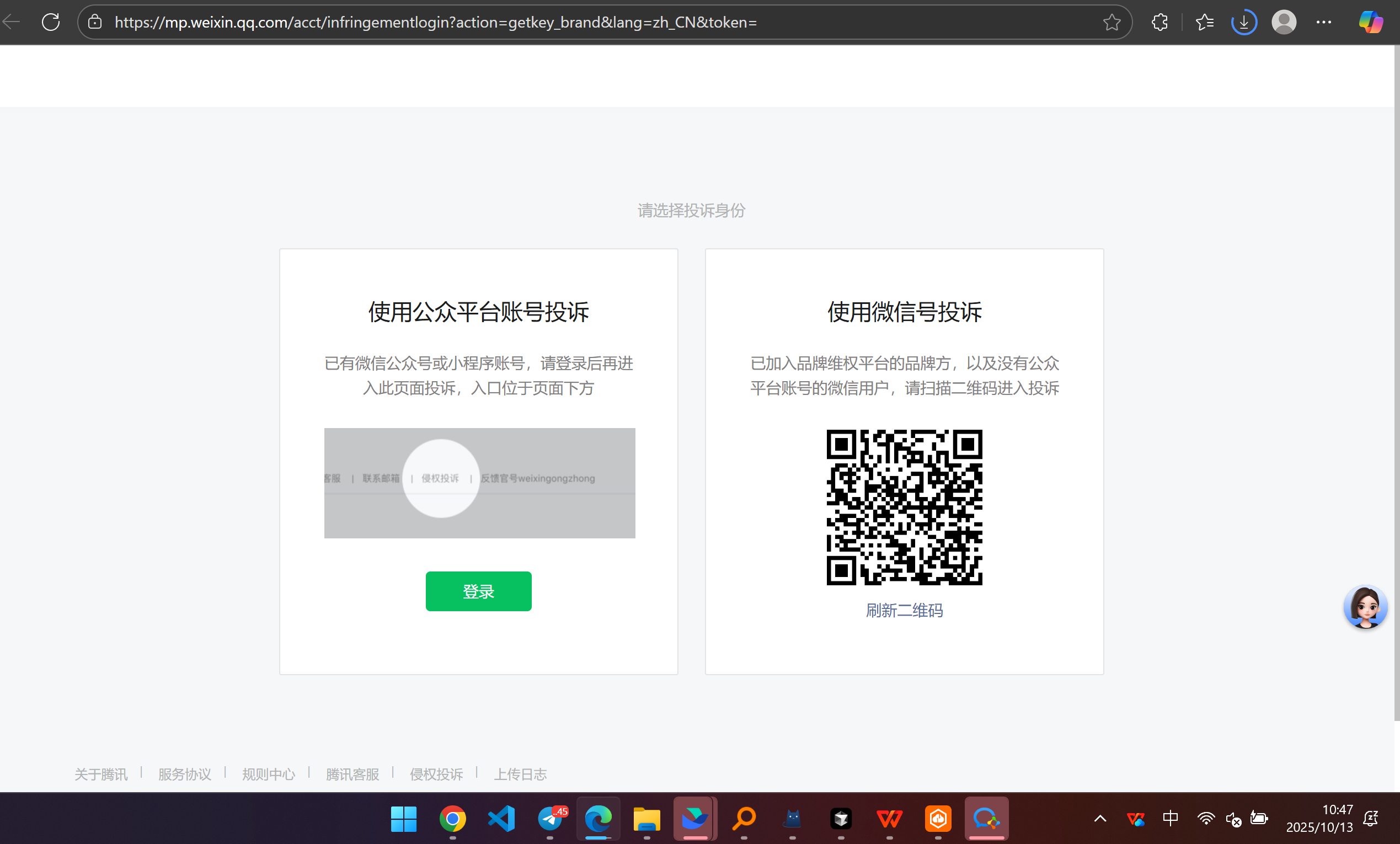还是不行,我是要进行侵权举报处理,不登录微信公众号,需要扫码登录微信个人微信号进行