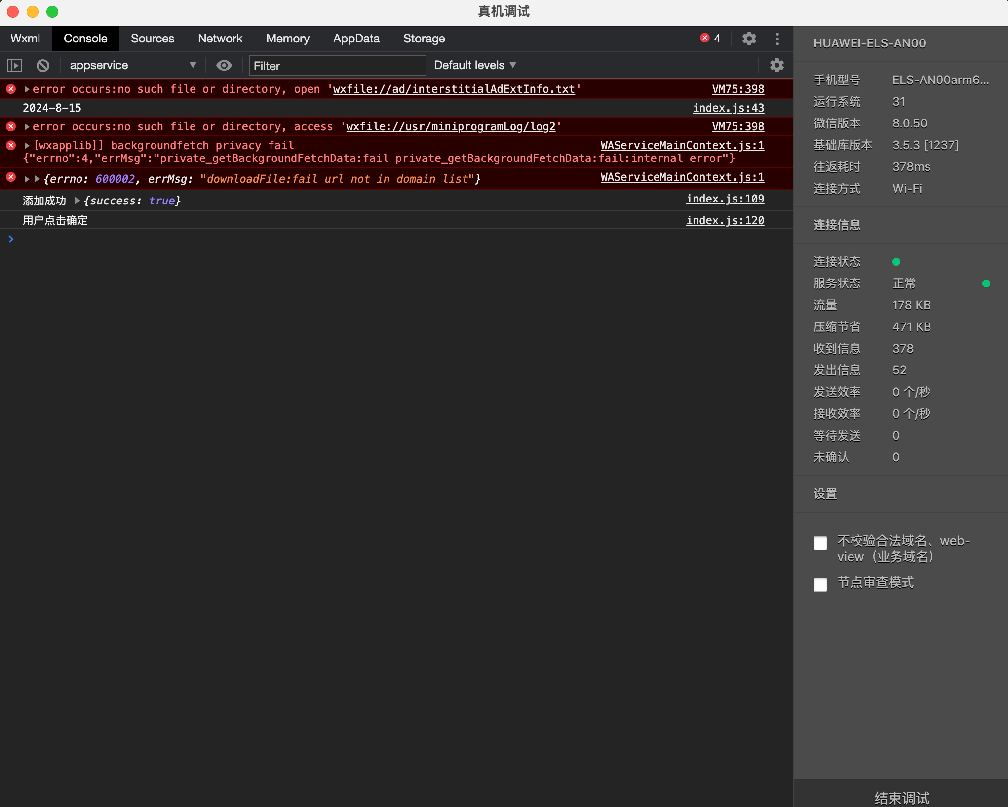 业务场景是:用户点击按钮获取到头像,并保存到云数据库的集合中,然后把头像地址转换成临时链接保存到云存储中,在真机调试时,就提示“downloadFile:fail url not in domain list”