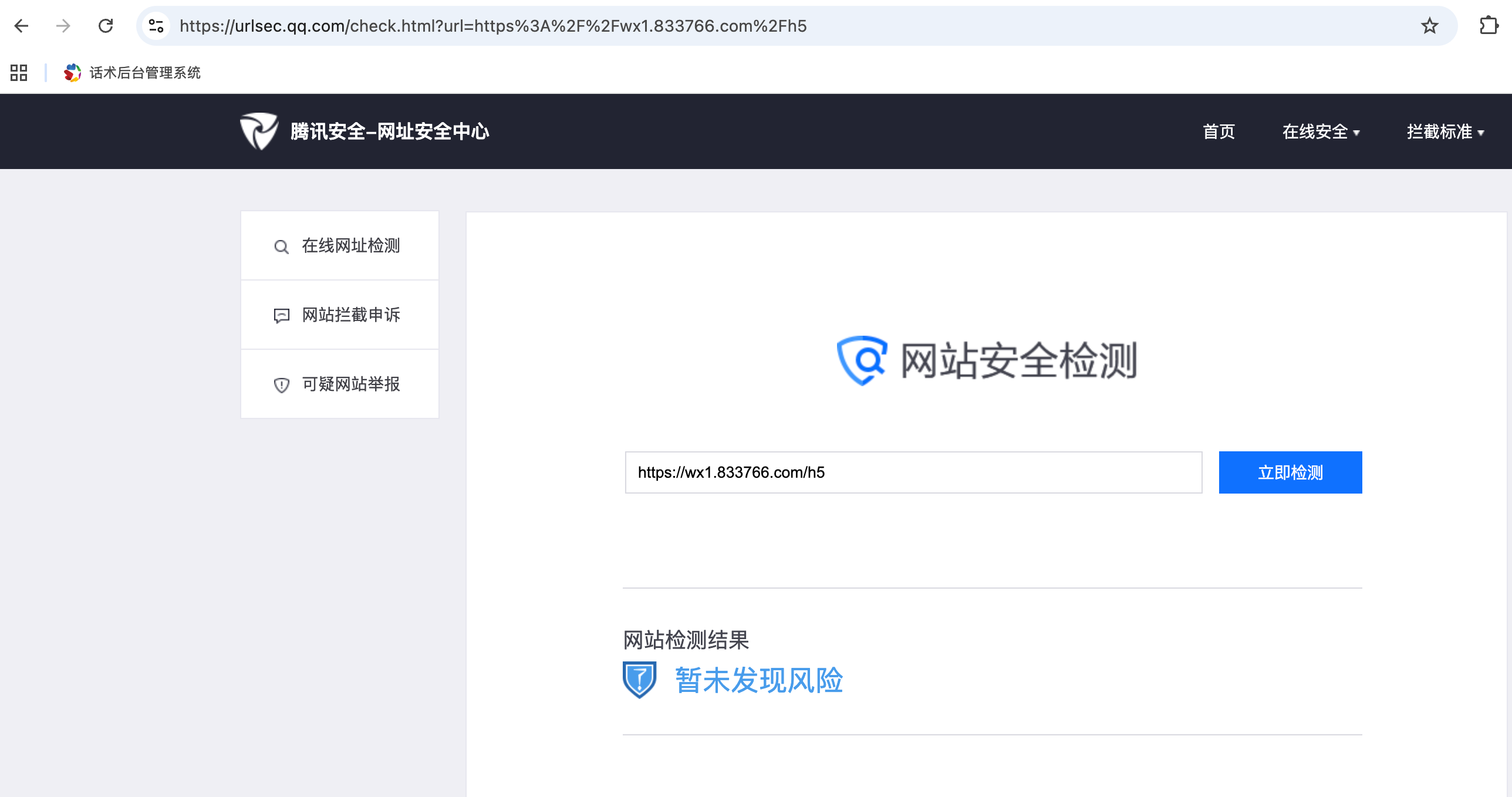 https://wx1.833766.com/h5/,域名并未违规,但是在微信内被拦截,无法直接访问,需要能恢复直接访问