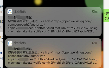 1)消息通知是在自建应用里的,使用的用户都是内部用户;