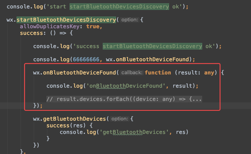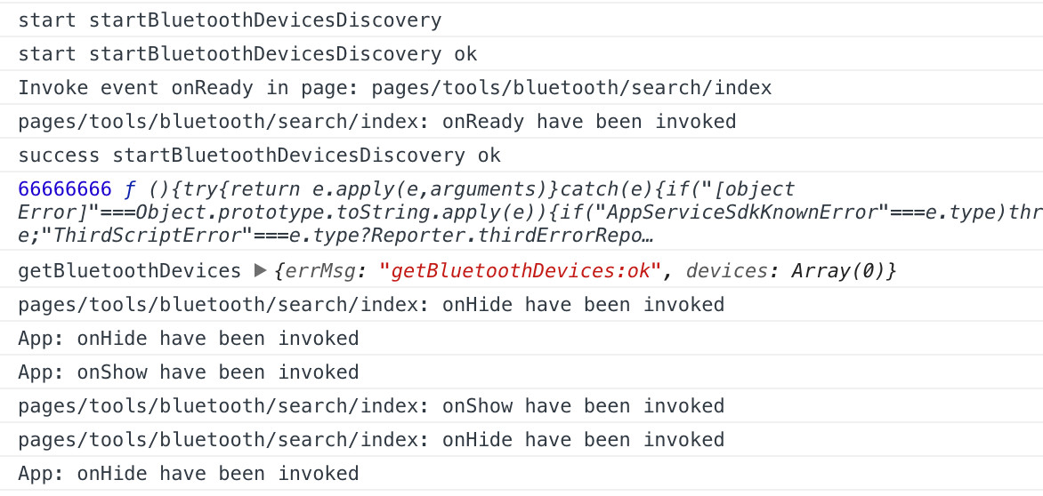 wx.onBluetoothDeviceFound 有输出搜索到的蓝牙