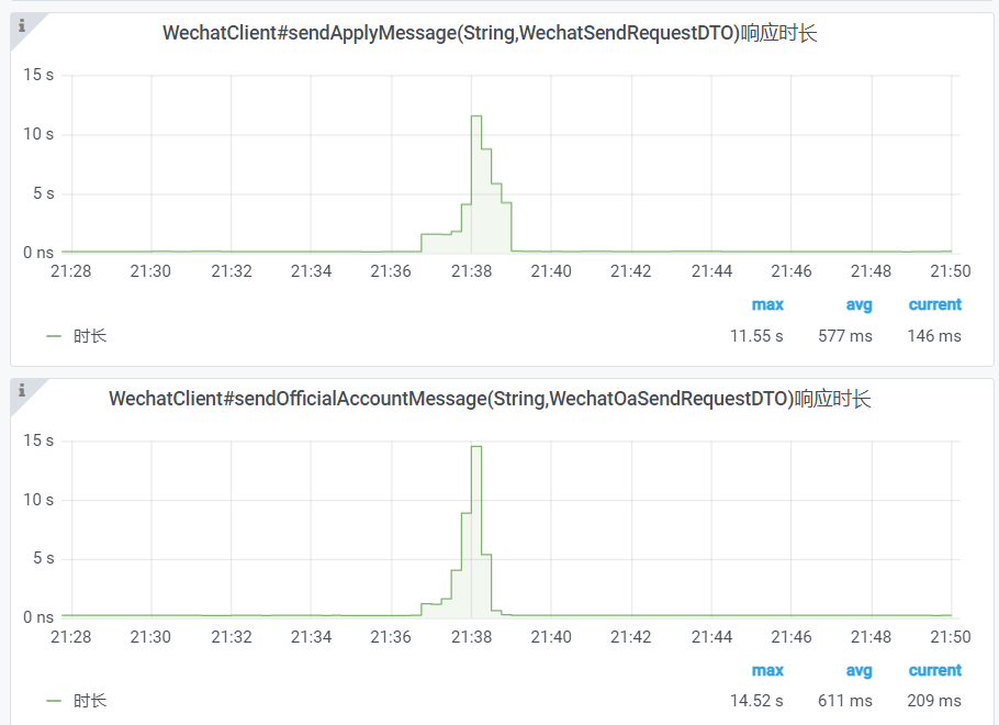 可以看到 在某2022.1.4的21点36到21.39之间 发送小程序模板消息和公众号模板消息返回的时间太长。这个是不是微信那边有问题?