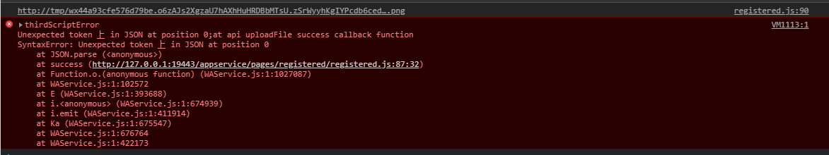 写的很清楚嘛~返回的res内容无法被JSON.parse转换,你直接console.log(res)看看呢