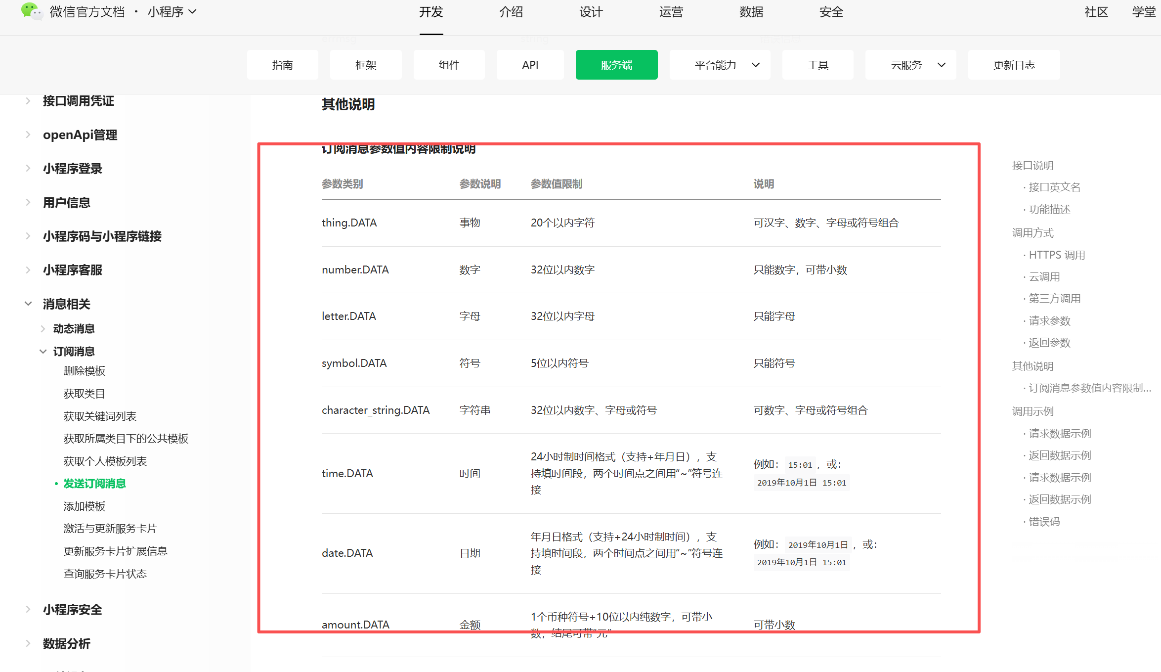 小程序通知里面,参数支持哪些字符?哪里有说明文档,最大长度是什么?哪里有说明?