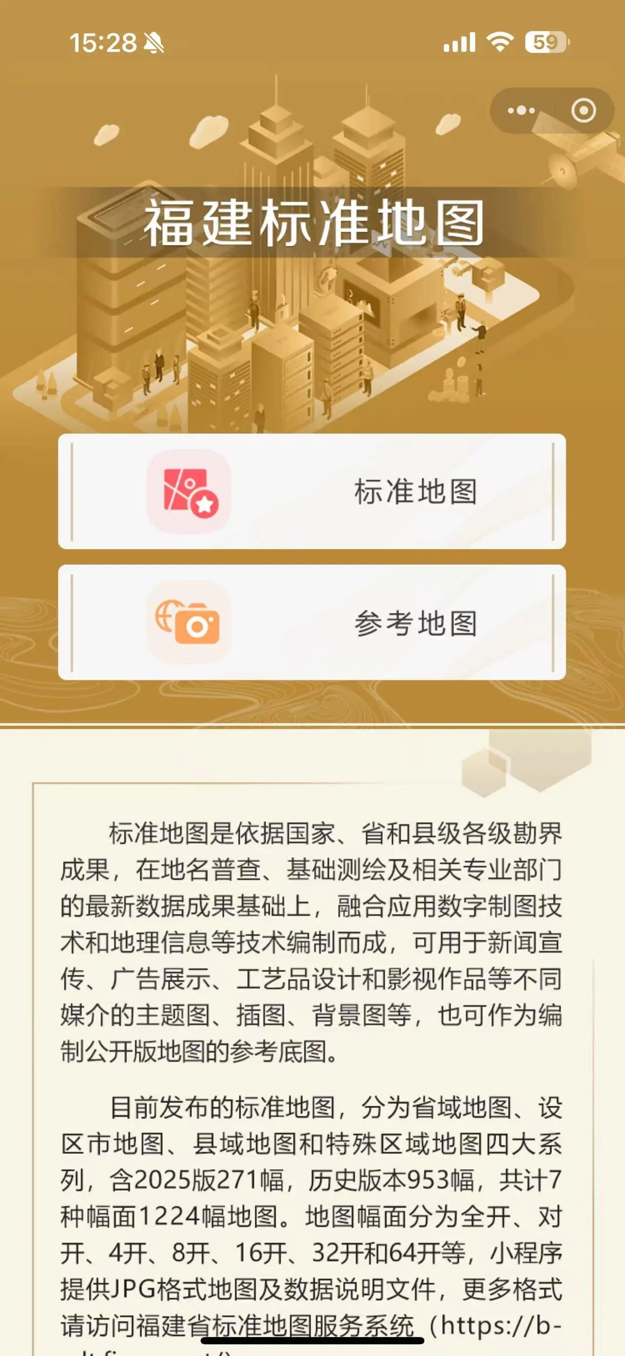 这是福建标准地图小程序的正常打开效果,以下都是加载的图片: