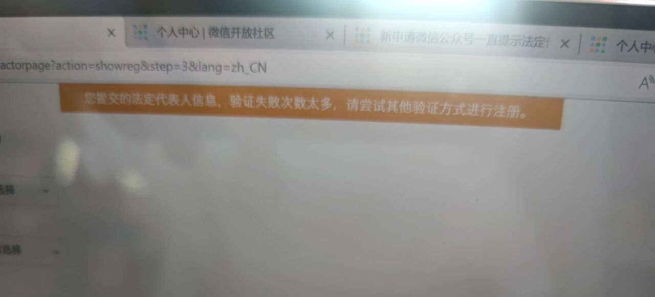 巧家县玉屏街道弓木壹品超市,申请微信公众号,法定代表人验证失败,将近一个月了问题仍未解决