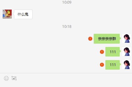 一样,B端给C端发消息,C端可以收到,但是B端显示红色感叹号