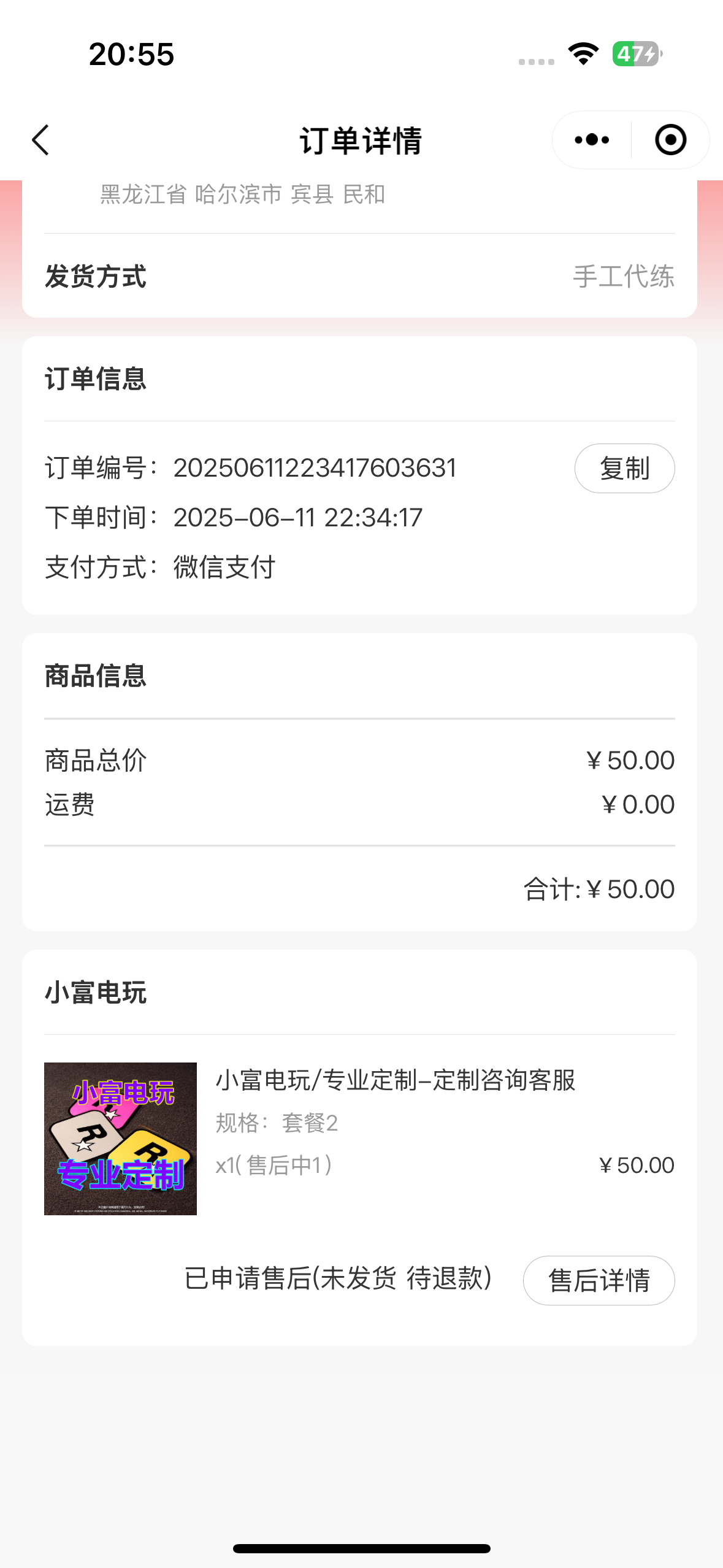 在小富电玩下单了商品 不想要了 申请退款 无回应