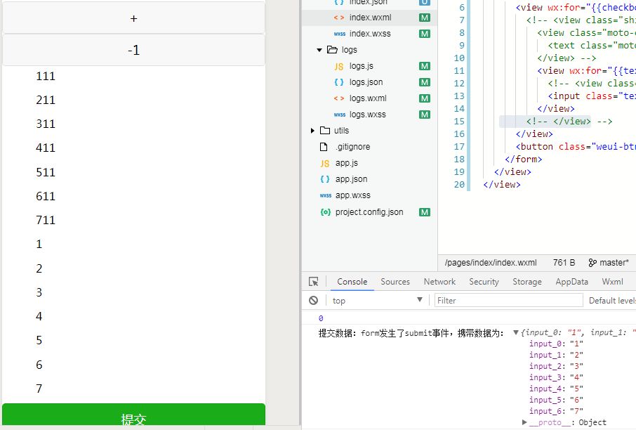 图中前面七个是初始的七个 下面的七个input是从+按钮动态添加的 为什么提交只能收到最新添加的七个呢 求解答 困扰我两天了quq