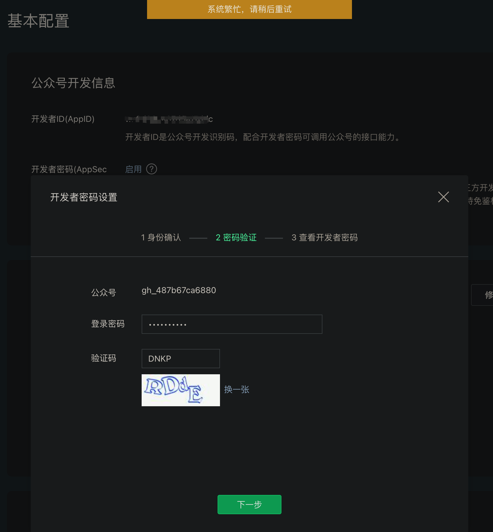出现这个提示一般是操作过于频繁了,建议24小时后再操作试试,期间不要有任何操作。