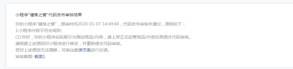 4、开发的小程序里面的功能或者内容有出现“测试”,“未完成”等字样,如果出现了,微信审核人员会认为你的小程序是测试版本不给予通过!