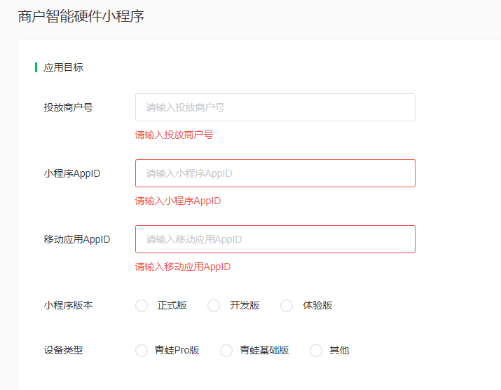 你好,请按照这里指的指引准备应用的appid:链接是硬件运行小程序 产品介绍 | 微信刷脸支付 https://pay.weixin.qq.com/wiki/doc/wxfacepay/product/miniprogram.html#_3-2-%E5%B0%8F%E7%A8%8B%E5%BA%8F%E7%9A%84%E5%87%86%E5%A4%87