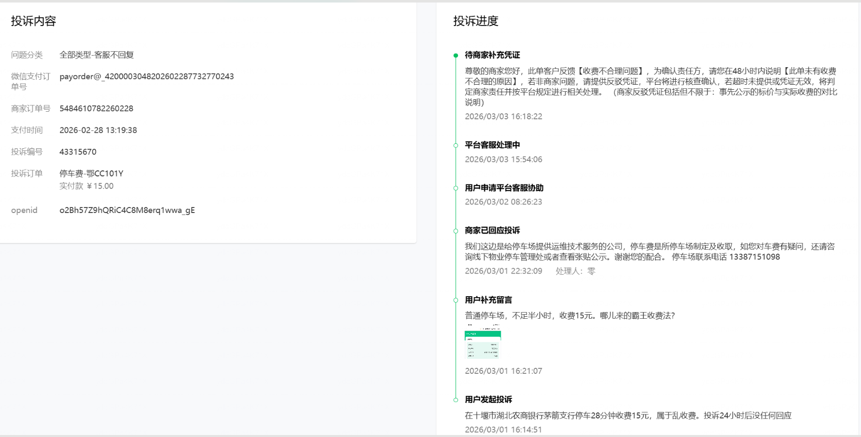 我们不是停车场商家,是支付服务商,费用问题不归我们,并且也及时反馈了,为什么判责我们?