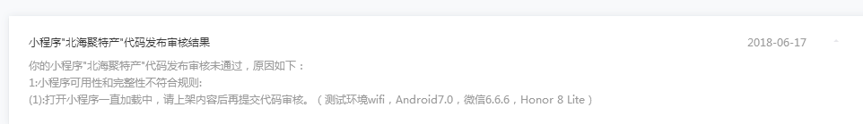 审核结果说一直加载,但在开发者工具和体验版测试中均无此类问题,求官方解答并给出详细说明,以及请官方确定是否是网络原因导致。请尽快通过审核请优化自身网络后再打开小程序!!