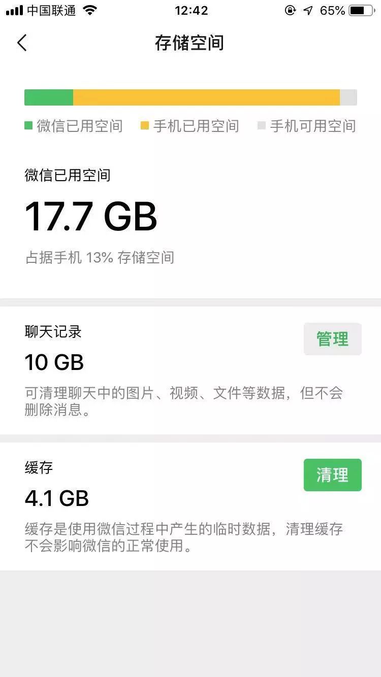 出现问题的手机的 存储空间 截图