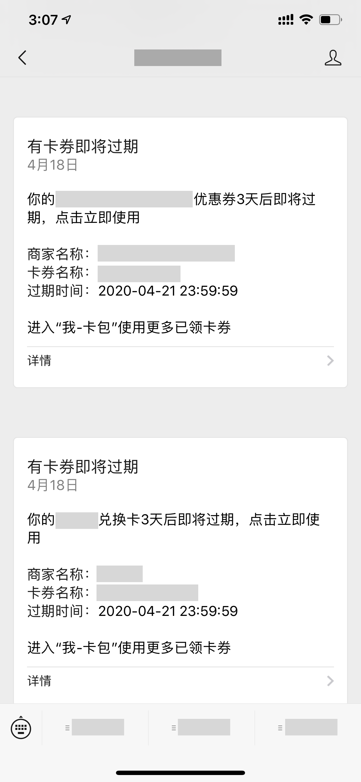 (微信卡券过期提醒示例)
