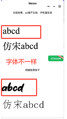 bug是:canvans中显示的abcd字体并未生效,字体不生效!