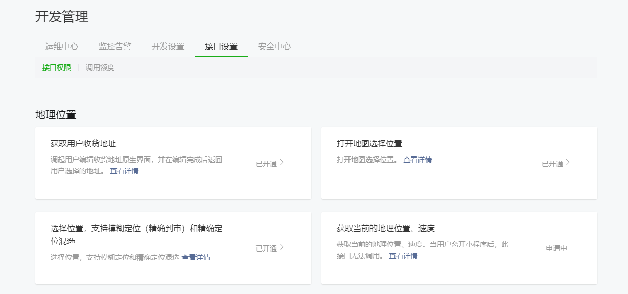 你好,核实你小程序提交的wx.getLocation接口申请已审核通过,但wx.onlocationChange接口审核不通过,申请wx.onlocationChange接口需同时满足类目开放范畴和接口使用场景开放范畴两个条件才可通过审核,建议在提交接口审核时详细描述下申请接口在小程序内业务场景使用的必要性,并提供小程序内申请接口相关截图或录屏辅助审核,以便快速通过审核。开放范畴详情参考:https://developers.weixin.qq.com/miniprogram/dev/api/location/wx.getLocation.html
