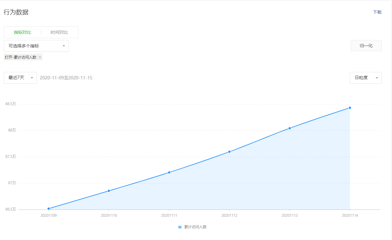 如图,选择上周数据,数据只显示到11/14日的,缺失11/15日的数据。