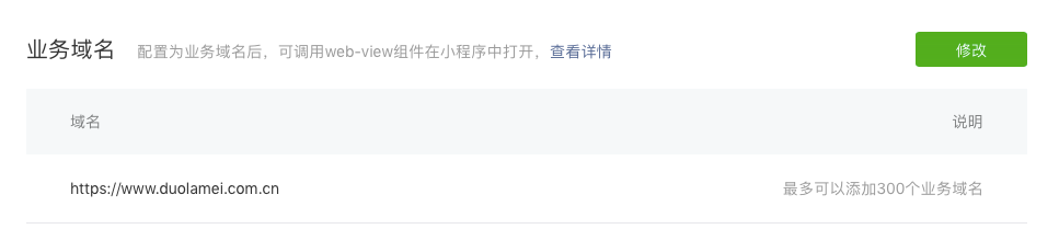 1、已经在小程序开发者后台,配置了业务域名,截图如下: