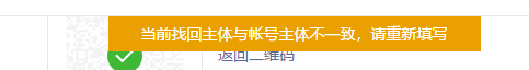 微信公众平台找回帐号时 提示 当前找回主体与账号主体不一致,请重新填写