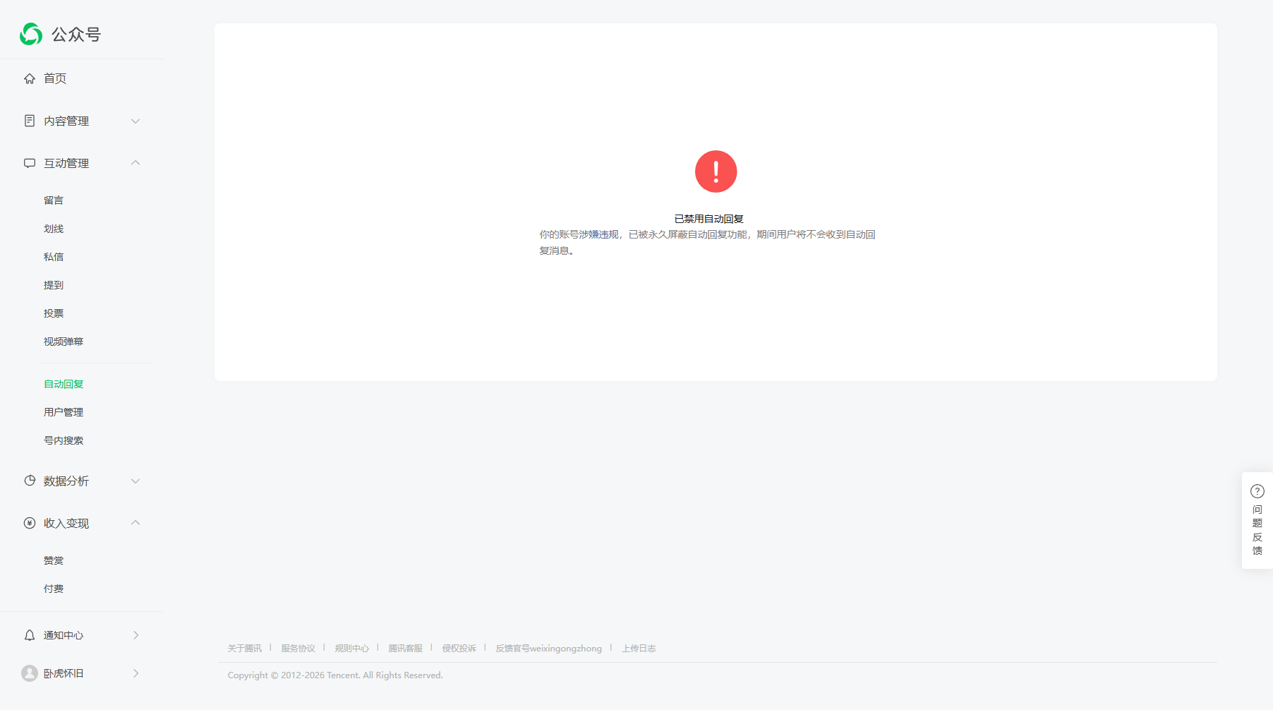 微信公众号长时间未使被冻结,今天然后解封,自动回复怎么显示涉嫌违规?