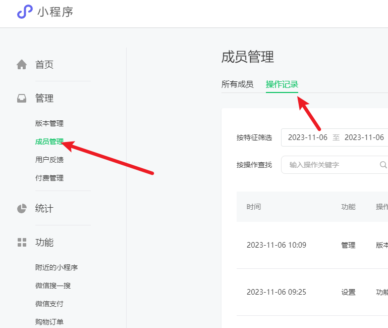 成员管理,开发记录,如果开了第三方授权的话,有可能是看不到修改的,就是第三方通过接口改的