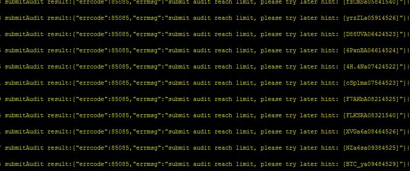 错误信息:submit audit reach limit, please try later hint: [Mo.z806074522]