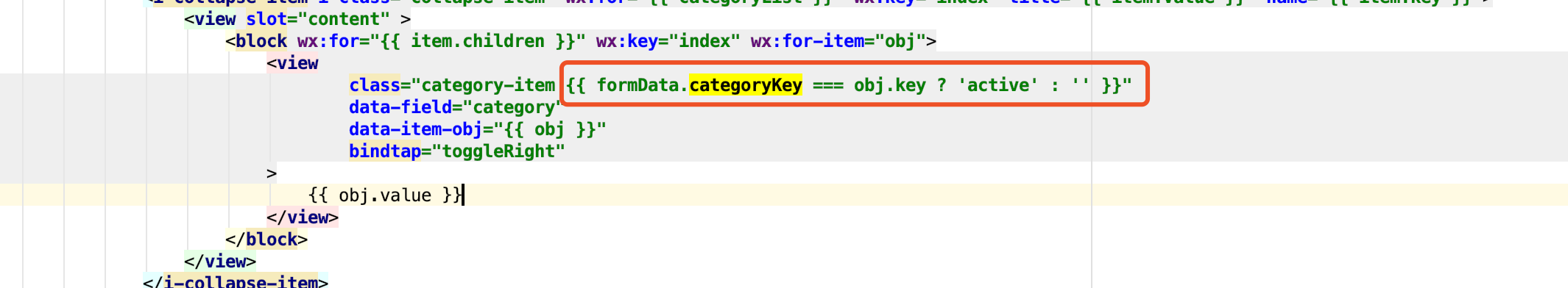 formData.categoryKey=‘1’,obj.key=‘1’,为什么active在DOM中无法渲染出来呢