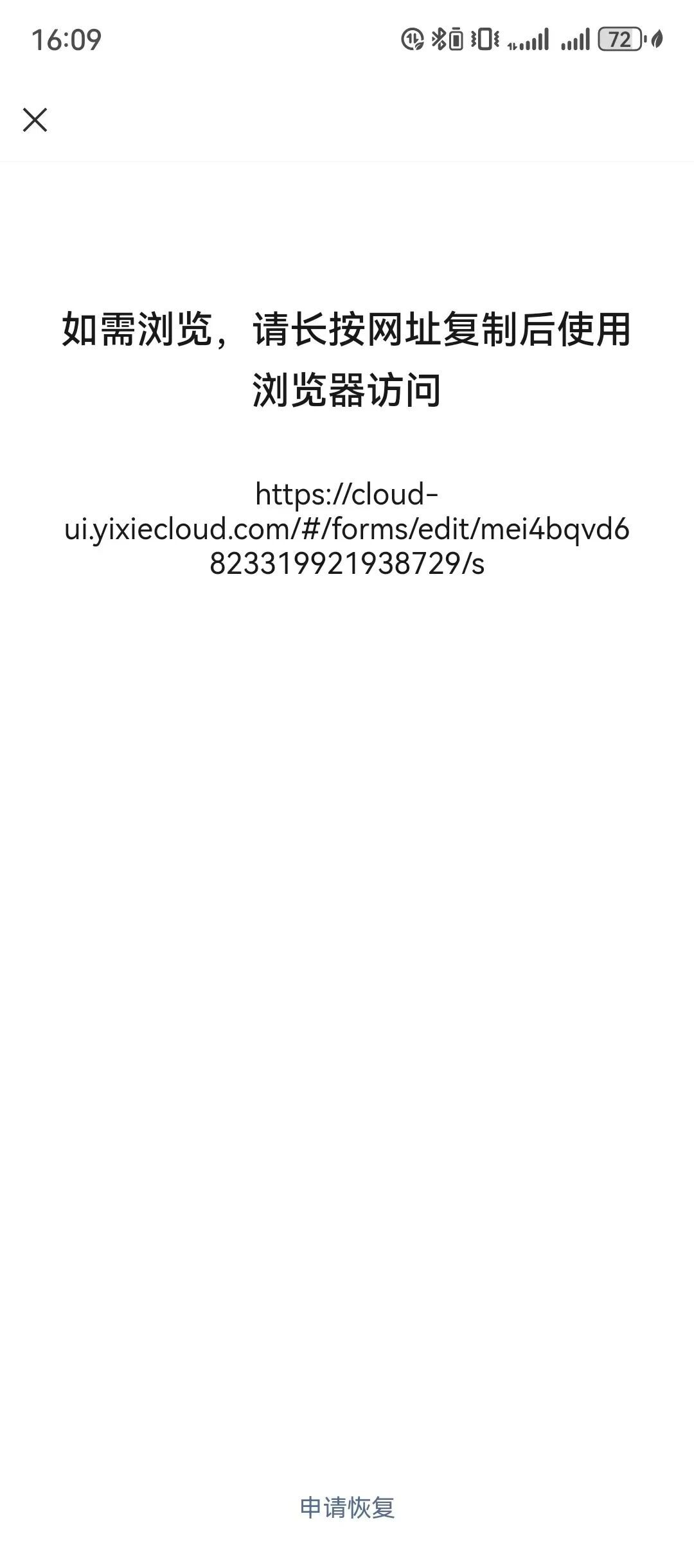 您好,域名yixiecloud.com在阿里云备案通过,浏览器访问正常,我是网站开发者,访问时间如图2025/9/19,点开网址提示“如需浏览,请长按网址复制后使用浏览器访问。”经检查网页里没有不安全的内容,请核实后帮忙解除拦截,谢谢!尽快处理,急急急,现在需要打开使用,谢谢!!!