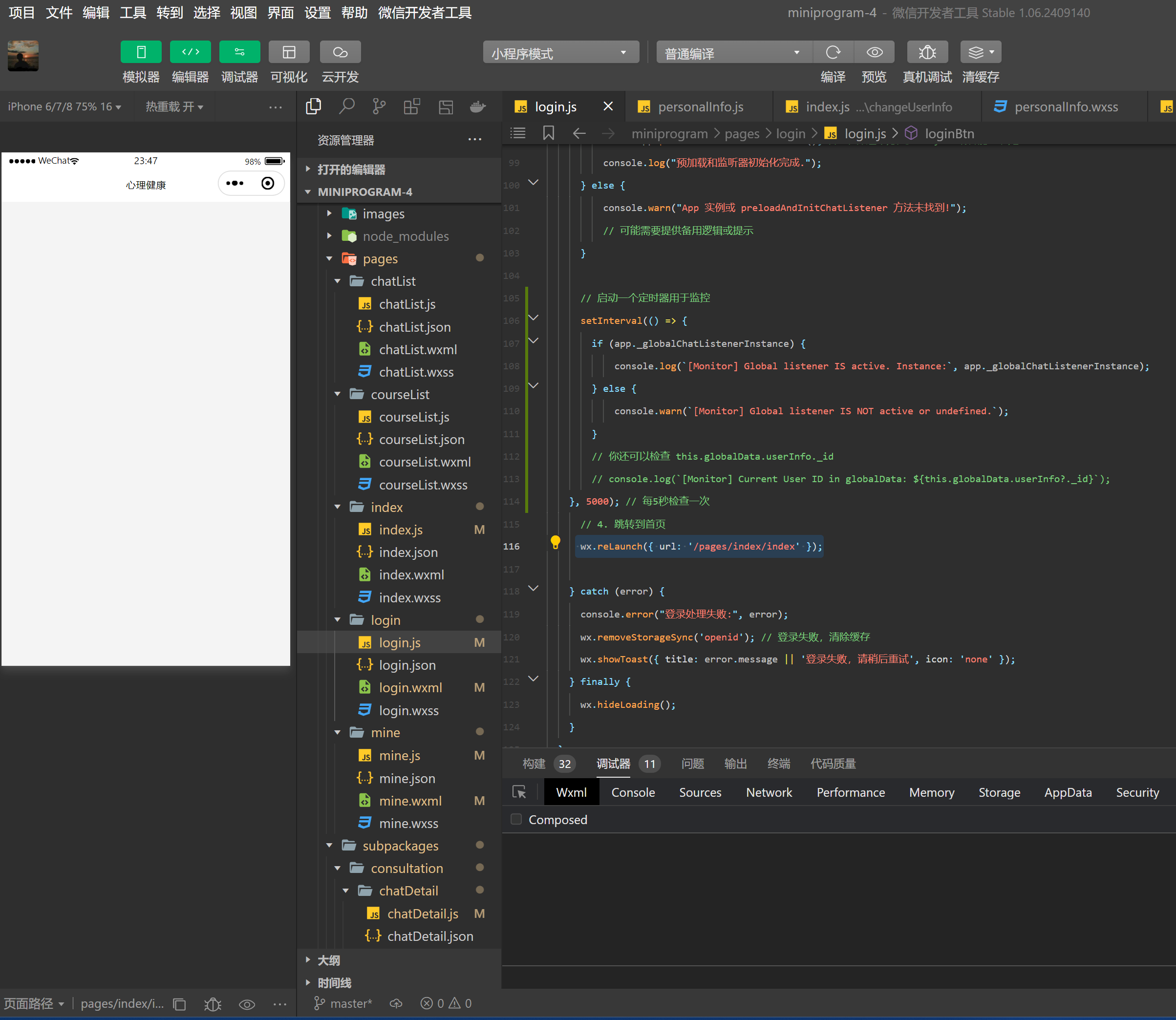 开发者工具版本号:1.06.2409140;操作系统:Windows11。