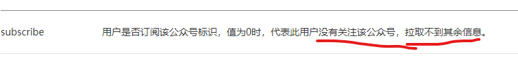 https://api.weixin.qq.com/cgi-bin/user/info?access_token=ACCESS_TOKEN&openid=OPENID&lang=zh_CN 用这个api获取到的用户信息并没有subscribe,第三方平台如何判断用户是否关注公众号? 除了获取公众号粉丝列表写入数据库,是否其它方法以判用户否关注公众号。我是用于第三方平台上的