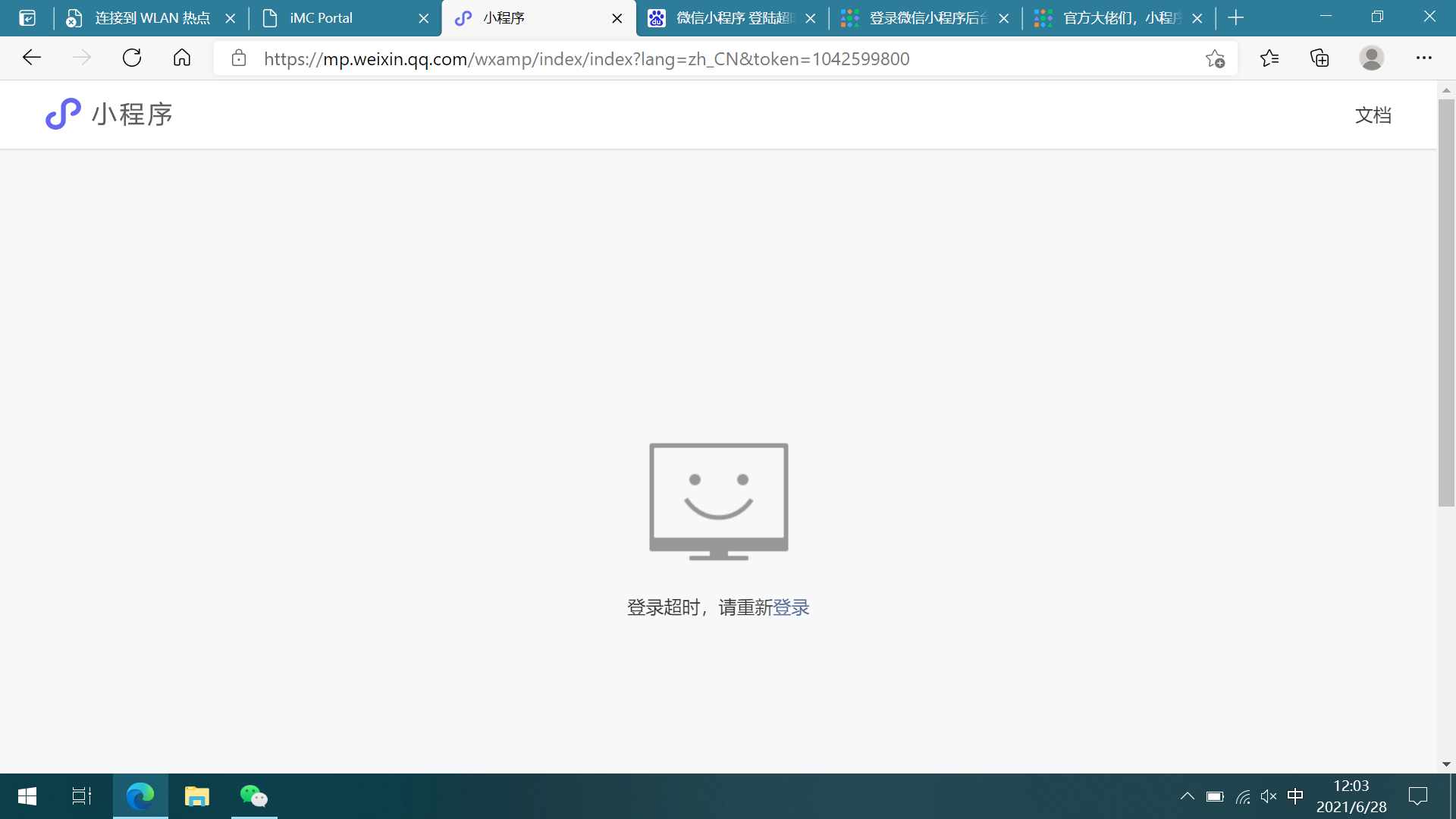 登录微信小程序的后台,怎么一直提示超时,点重新登录也提示超时