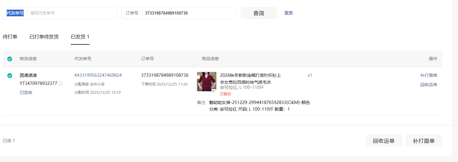 微信小店厂家代发的订单,有售后,用户选择补发,厂家如何取新的电子面单?文名:ewaybill_createorder 按这个取会提示 ,有售后的订单无法取号