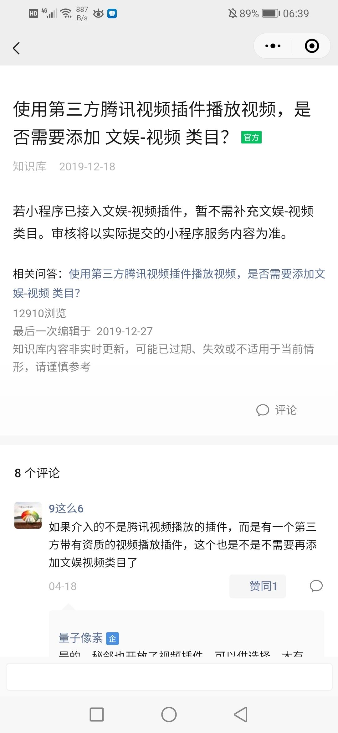 我有个小程序就是用腾讯视频插件播放视频的,一直审核通过的。个人感觉主要看小程序提供的服务内容