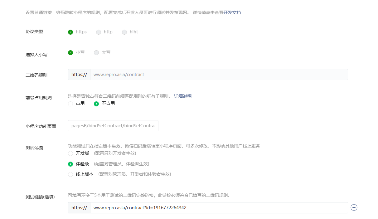 二维码规则校验文件也已通过,一开始用的是体验版,只有我本人扫二维码会弹出小程序,其他人体验成员不可以,到后面我也不可以,也就是现在的情况,翻看其他人反馈可能是我的域名被微信封禁,请查明原因并解封