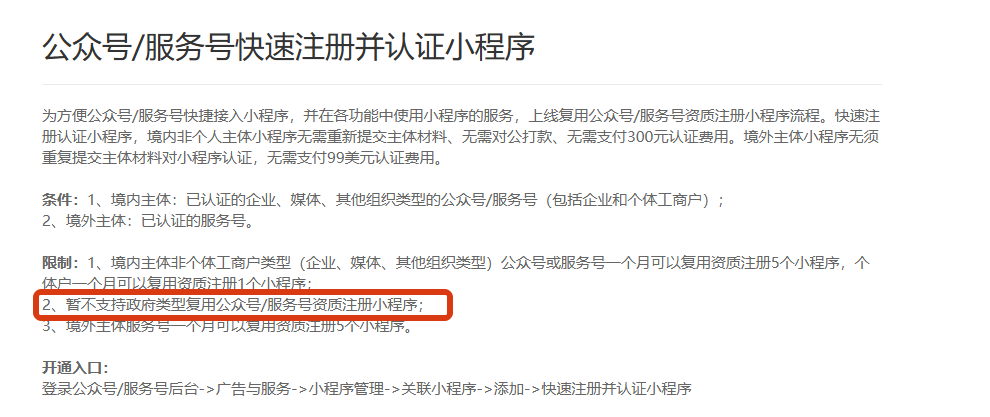 不是复用公众资质注册的小程序需要单独认证缴费