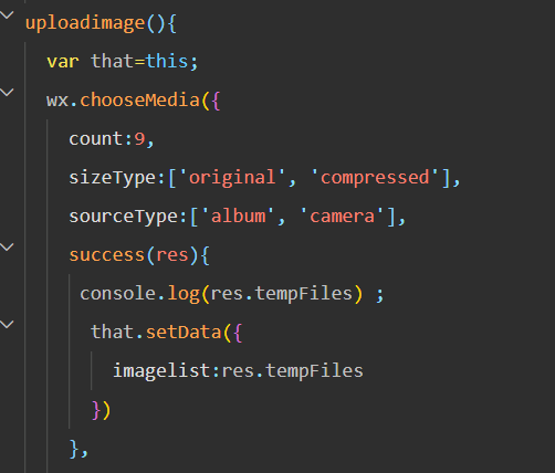 wxml: src改成这样: src="{{ item.path }}" js: imageList的初始值这样改: imageList: [ { path: '...' // 默认图片的路径 } ] 你也可以先打印下res的值,看看res.tempFiles的结构,就明白为什么这么修改了你选择文件之后,返回的tempFiles是对象文件,而不是文件的路径,导致图片渲染失败了,可以console.dir(res.tempFiles) 看一下实际返回的对象内容