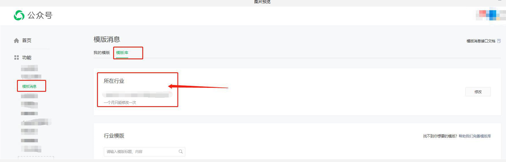 在消息模板设置中,要用的公众号所属行业选择,如何查看注册时所选的行业类别?