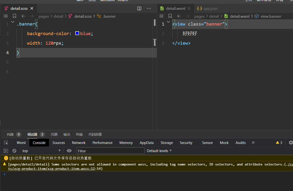 Some selectors are not allowed in component wxss, including tag name selectors, ID selectors, and attribute selectors。