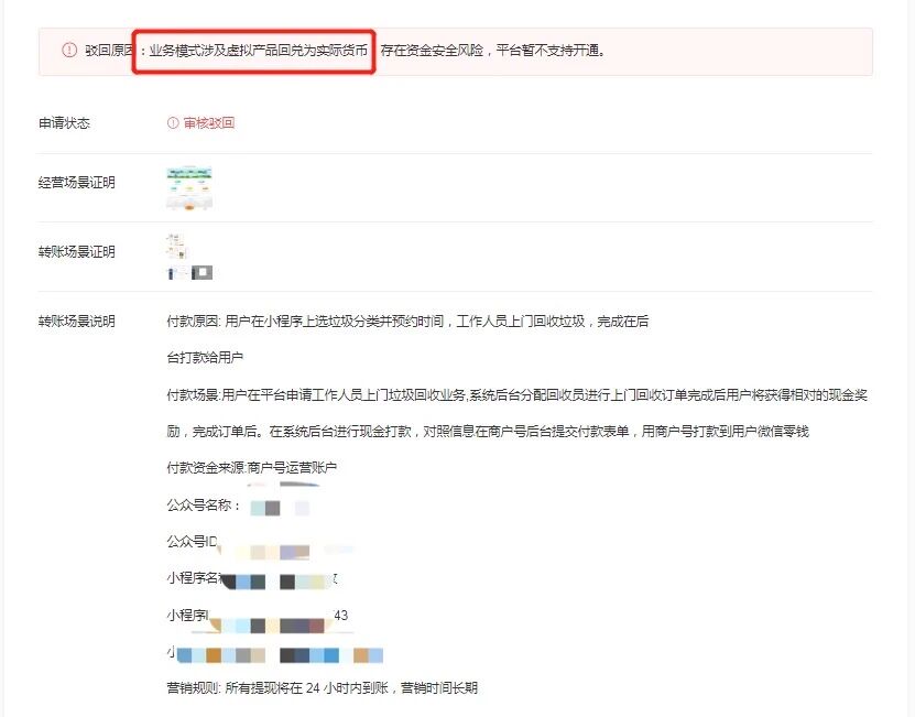 申请过两次了,想问一下大佬们是我们这个转账的场景方式不支持申请吗
