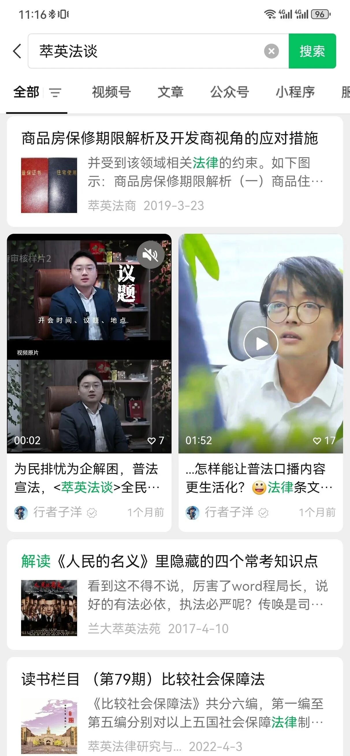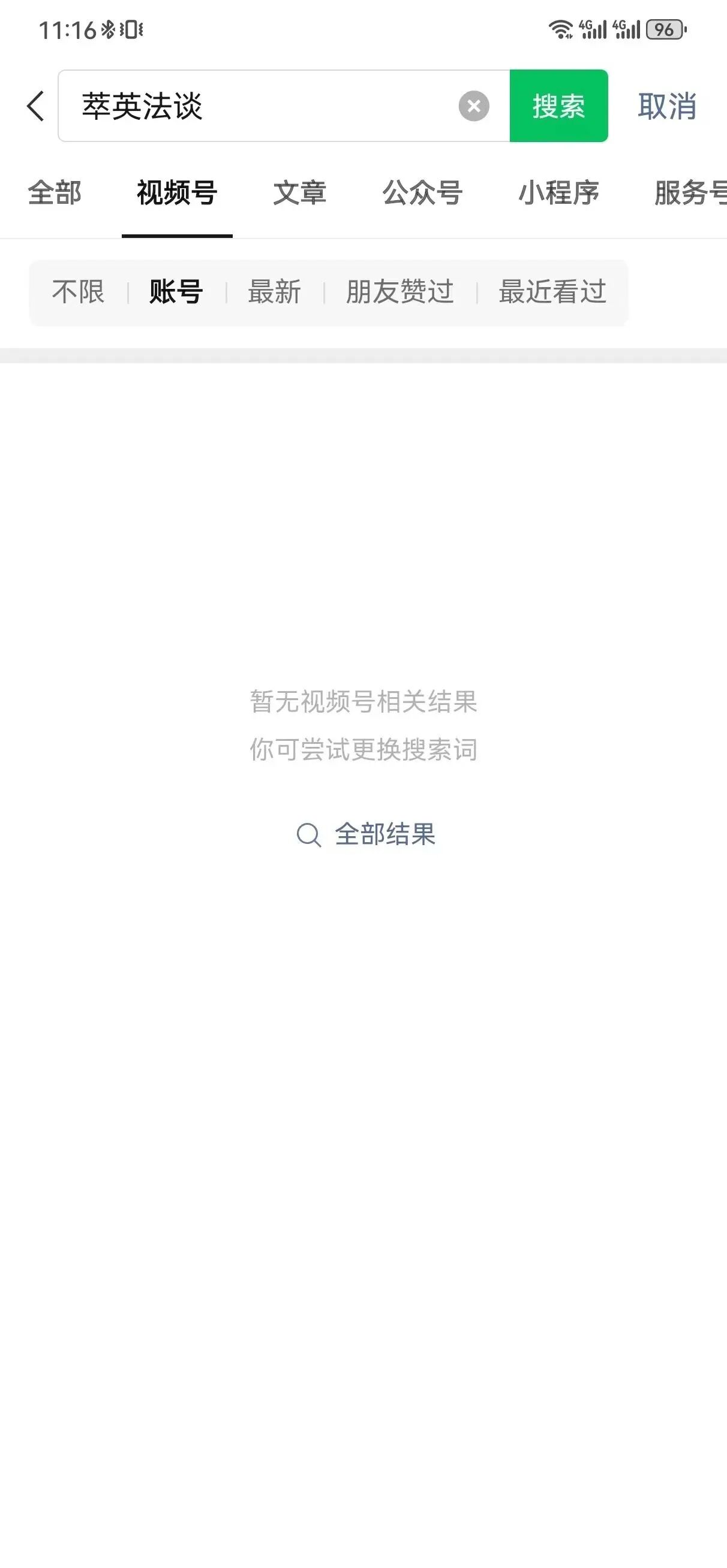 4. 问题描述:搜索关键词 萃英法谈 不能搜索到我们的视频号