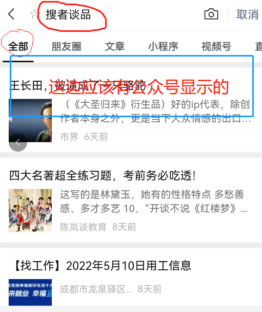 出现问题:发现在“搜一搜”默认搜索 '全部 '里搜索我公众号全称无法搜到我的公众号,隐私设置是开启的,以前都可以搜的到,有该公众号显示的,请帮我看一下,谢谢!