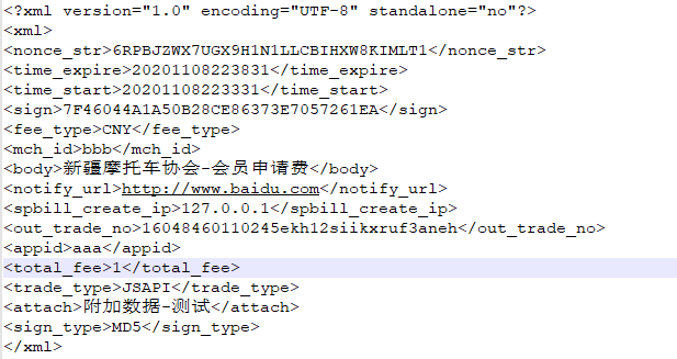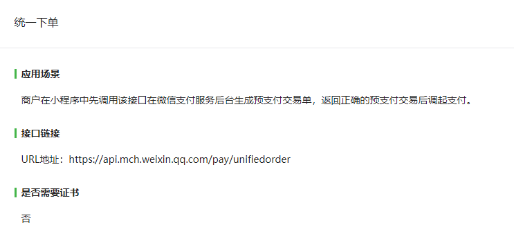 在调试时通过商户后台调用统一下单接口,该接口的调用参数为: