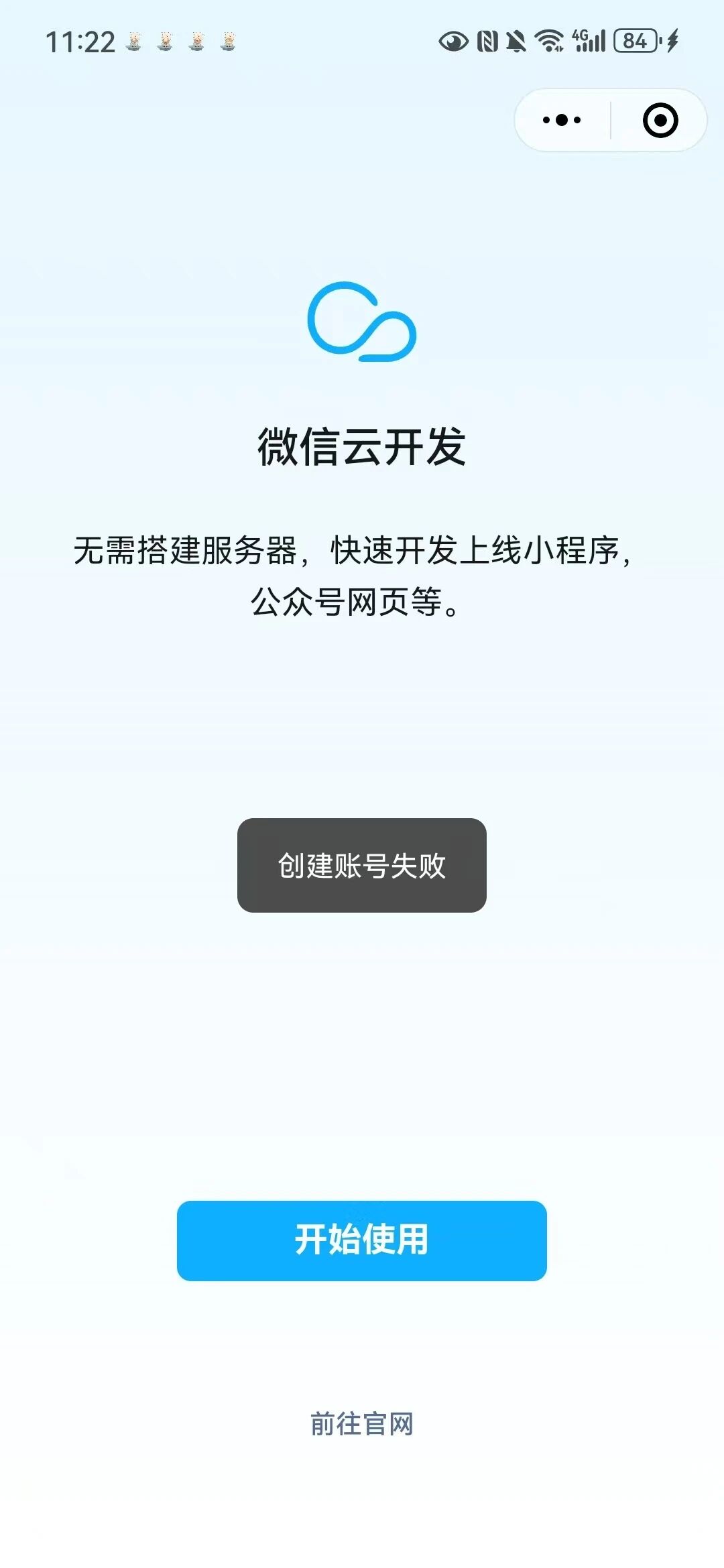 各种更新过,重启过,微信公众平台开通一直提示"创建账号失败" && 开发工具开通一直显示“请稍候...”