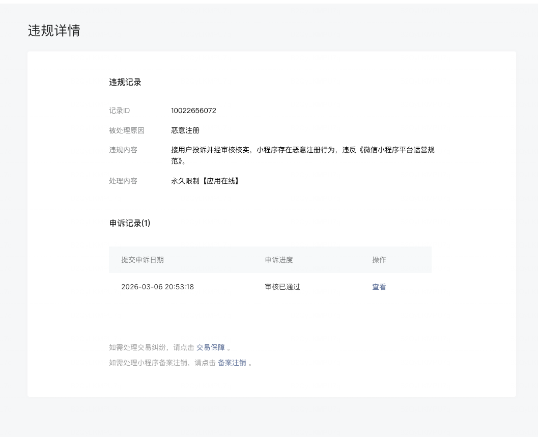 申述通过了小程序为什么不解封?