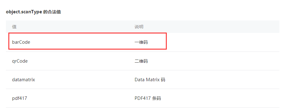 scanType: ['barCode'] 难道不是说只能识别到一维码吗?不应该能识别到二维码配置后还都能扫所有码,哪这个参数的作用是什么?
