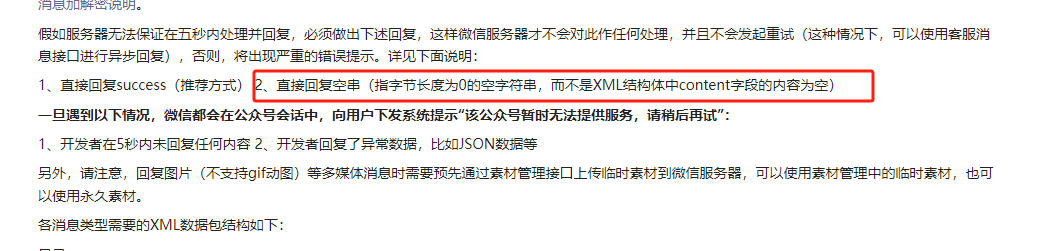 内容: 微信服务器向公众号推送消息或事件后,得到的回应不合法