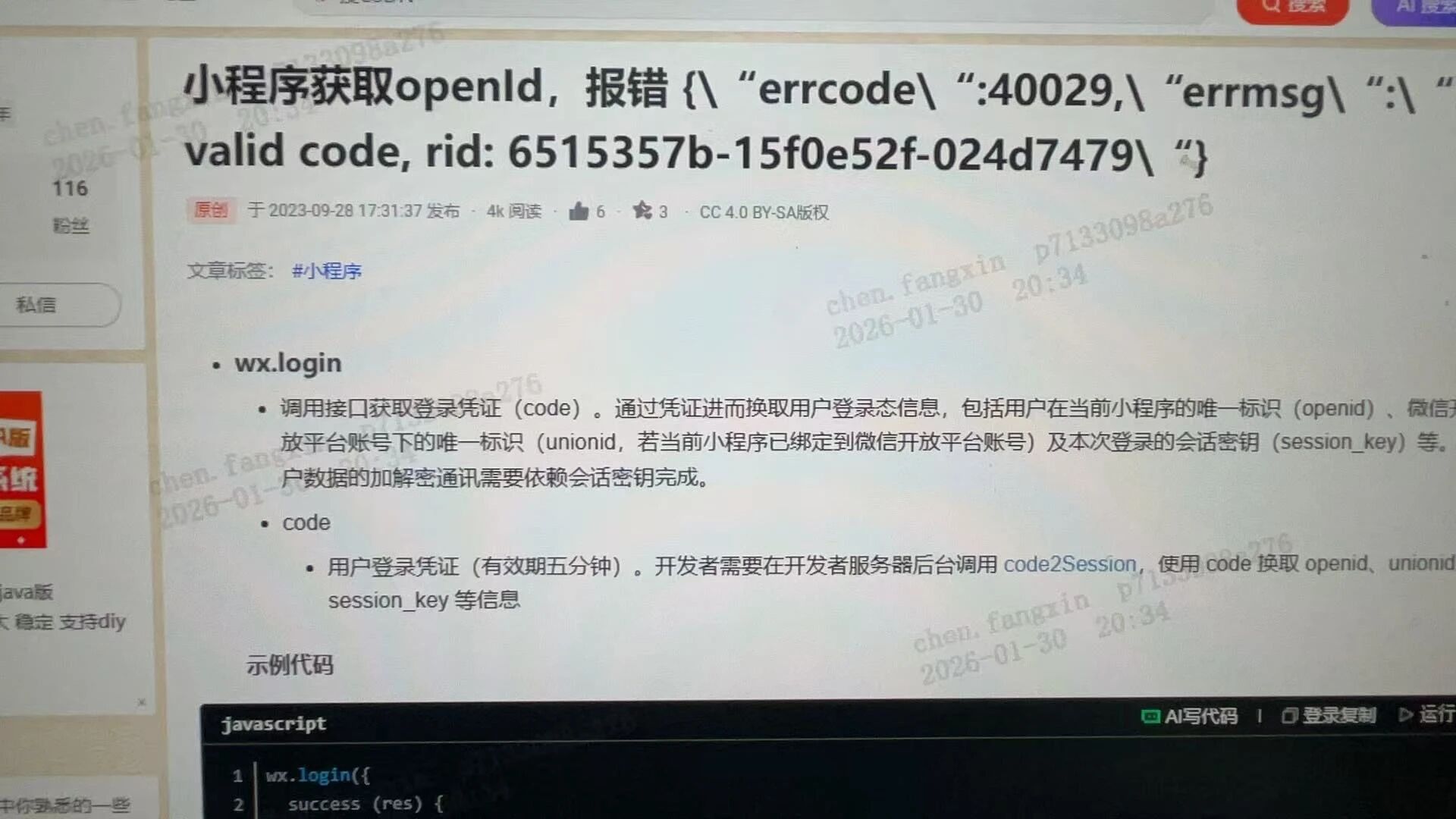code无效,要么你传参有问题,要么你code过期,要么你code和你发起请求的token不是同一个appid 账号下的。