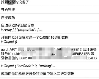 console.log( "开始搜寻附近的蓝牙外围设备---成功" )
